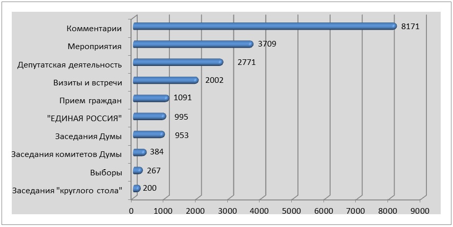 Наибольшее количество сообщений (постов) опубликовано на страницах Думы
