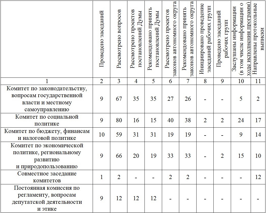 3.1. Деятельность комитетов Думы автономного округа и Постоянной комиссии Думы автономного округа по регламенту, вопросам депутатской деятельности и этике