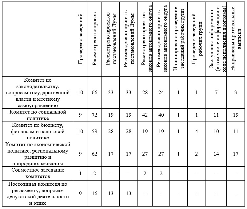 3.1. Деятельность комитетов Думы автономного округа и Постоянной комиссии Думы автономного округа по регламенту, вопросам депутатской деятельности и этике