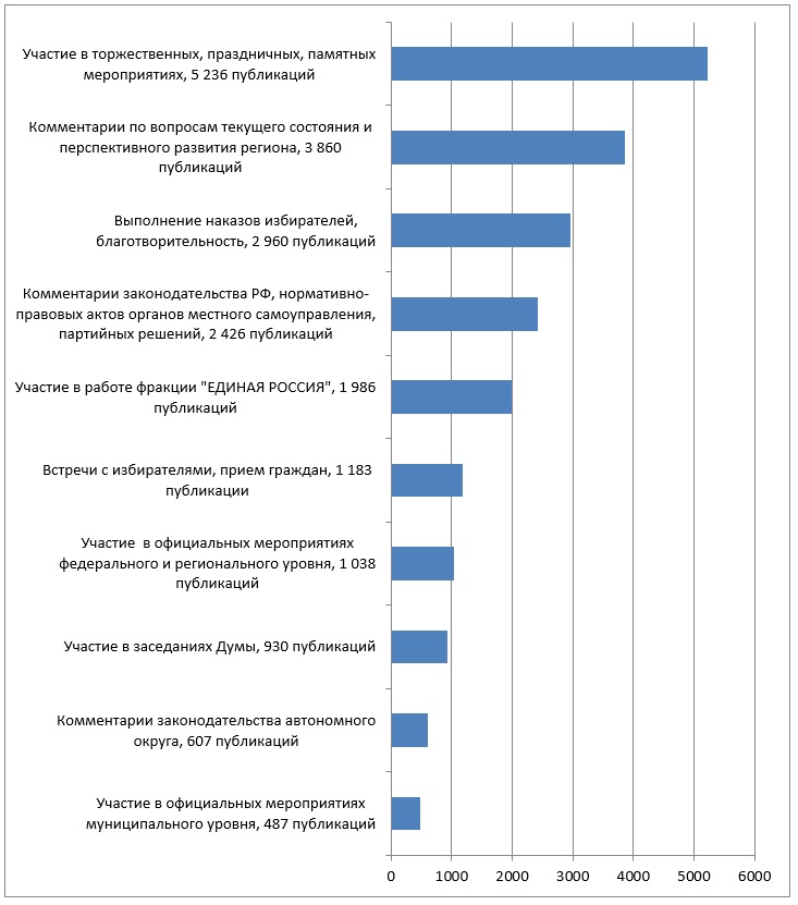 находились персональные страницы депутатов Думы в социальных сетях – 6 086 сообщений (постов). Высокая