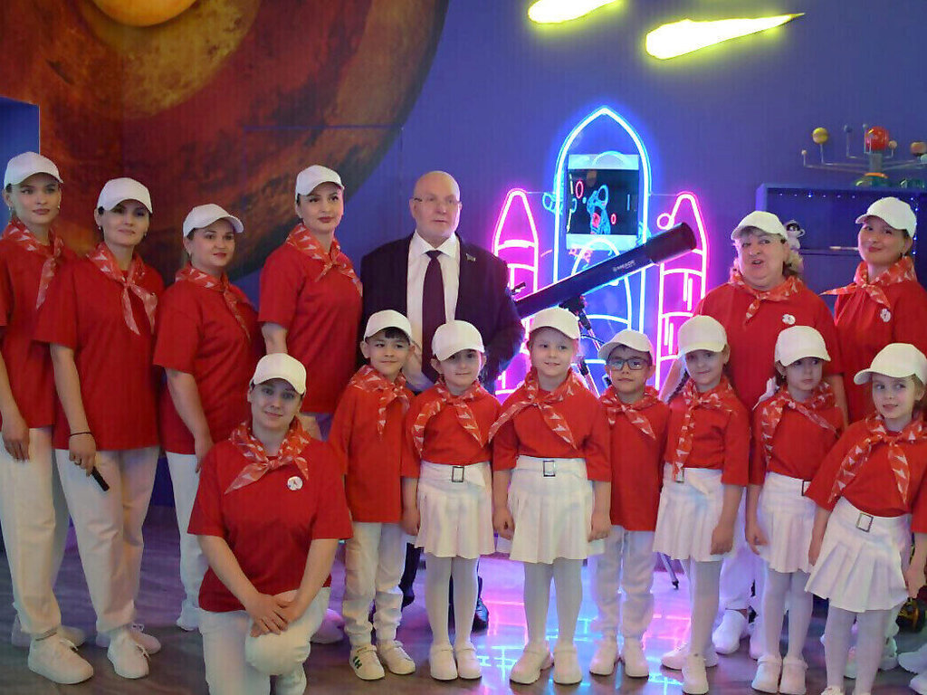 В детском саду «Солнышко» заработала площадка «Первые на Луне». Это полноценный мини-планетарий с интерактивным экраном, детским телескопом и «звездным небом». Больше пяти тысяч человек, включая родителей, смогут здесь поучаствовать в экскурсиях и квестах, посвященных космосу. В соответствии с задачами национального проекта «Молодежь и дети» эта инициатива направлена на расширение знаний о мире и знакомство с научными профессиями.