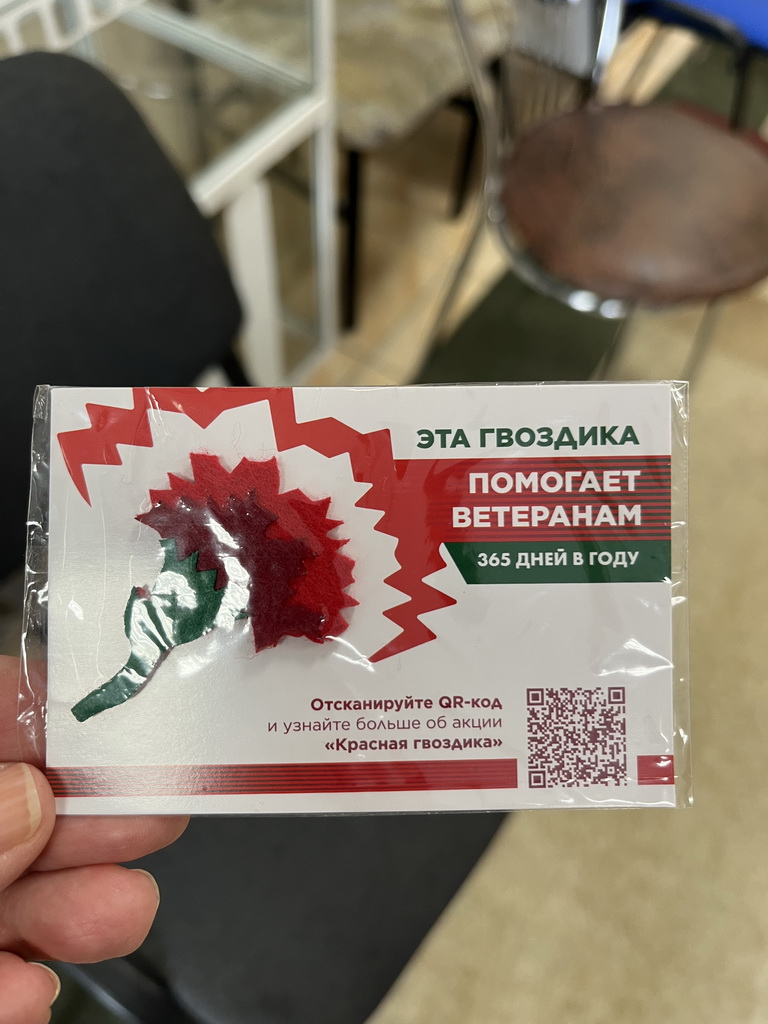 Средства от приобретенных значков «Красная гвоздика» направляются на помощь ветеранам России: это инвалидные кресла-коляски, слуховые аппараты, протезы и многое другое.