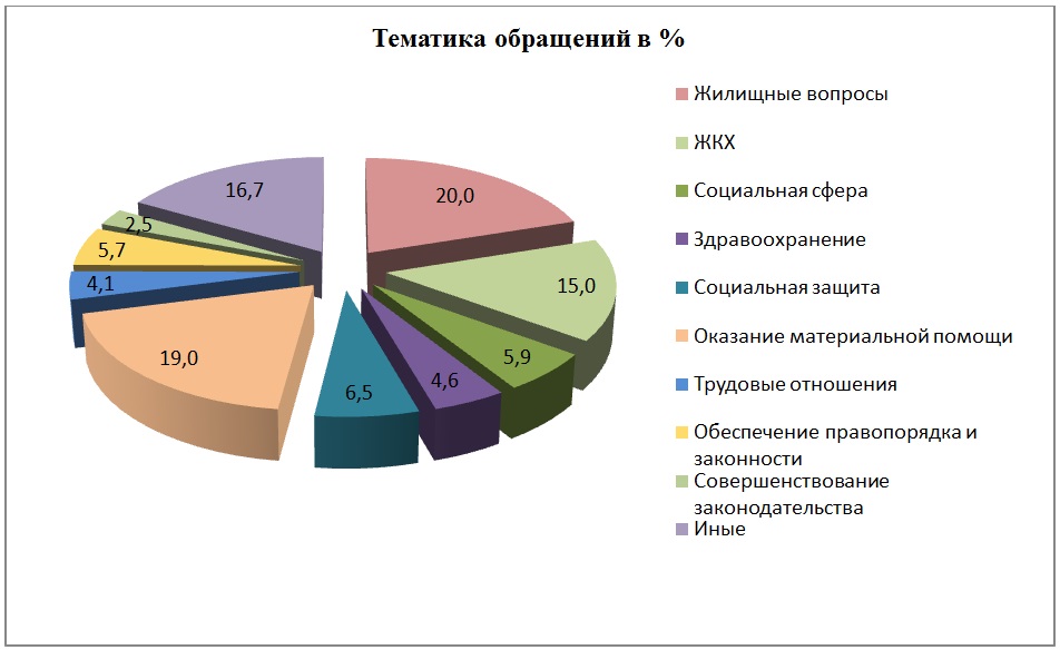 1.Диаграмма классификации обращений по тематике затронутых вопросов. В диаграмме отражены показатели, имеющие наибольший удельный вес.