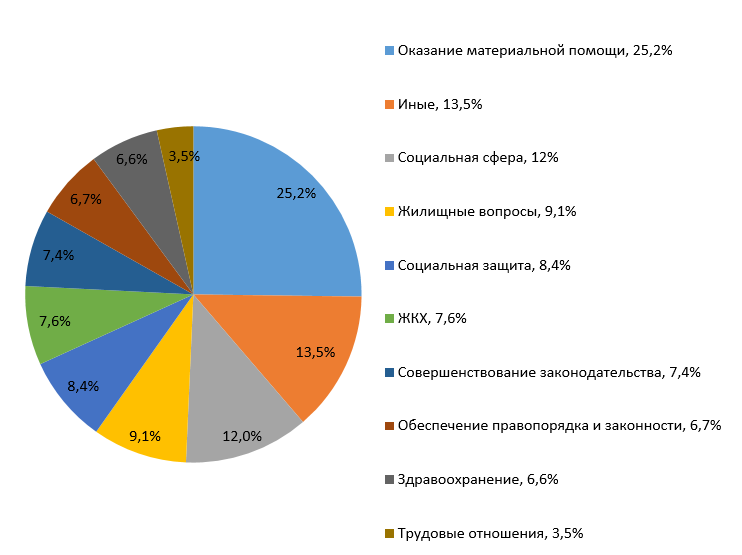 Классификация обращений по тематике затронутых вопросов (%)